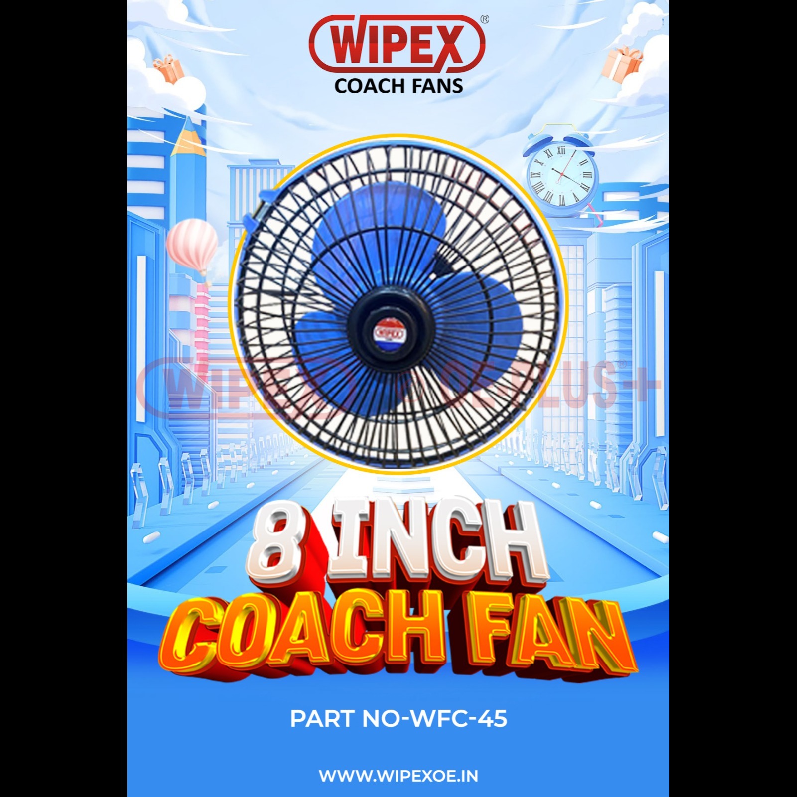 8 inch coach fan, bus cooling fan 8 inch, truck cabin fan, compact coach fan for bus, commercial vehicle cooling fan, WIPEX coach fan WFC-45, heavy duty bus fan, bus interior ventilation fan, mini coach fan for vehicles, automotive coach fan, truck air circulation fan, bus dashboard fan, vehicle cooling fan 8 inch, commercial bus accessory fan