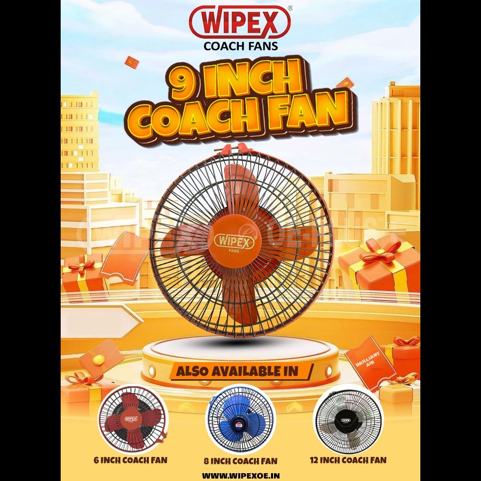 Turn every journey into a cool and comfortable experience with the WIPEX 9 Inch Coach Fan. Designed for buses, trucks, and commercial vehicles, this fan delivers powerful airflow that keeps the cabin fresh—even during long drives and hot weather.