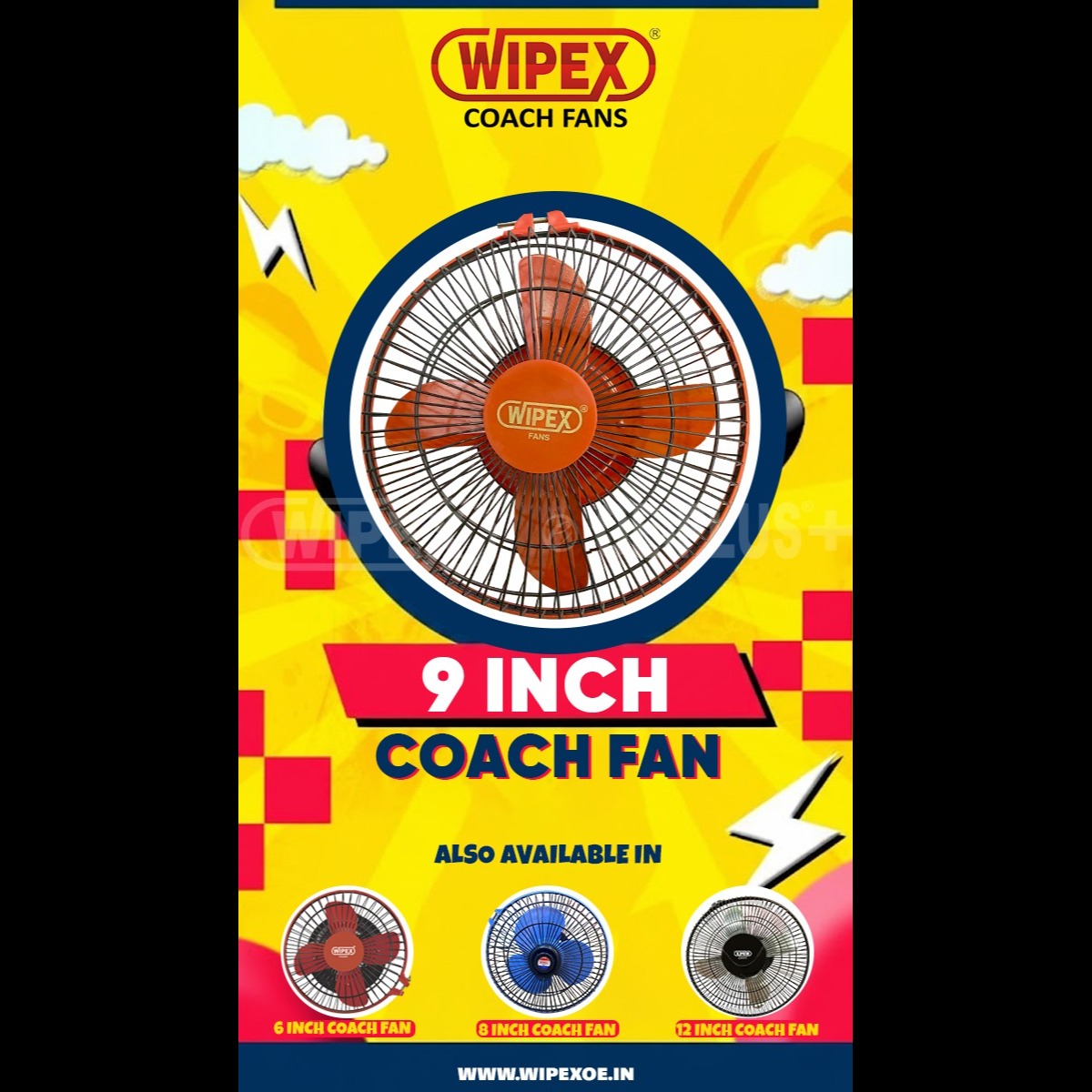 9 inch coach fan, bus cooling fan 9 inch, truck cabin fan, commercial vehicle fan, heavy duty coach fan, WIPEX coach fan, vehicle cooling fan for bus, truck interior fan, automotive coach fan, bus passenger cooling fan, dashboard fan for bus, high speed vehicle fan, bus ventilation fan, commercial bus accessory fan, vehicle air circulation fan