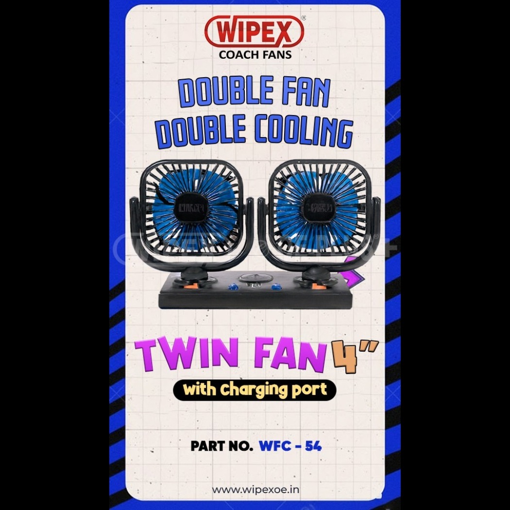 Stay cool and comfortable on every journey with the WIPEX Twin Fan 4' (WFC-54). Designed with a dual-fan setup, this smart cooling solution provides stronger airflow and better air circulation inside vehicles. Perfect for buses, trucks, and cars, the twin fan design ensures that both driver and passengers enjoy refreshing airflow at the same time.