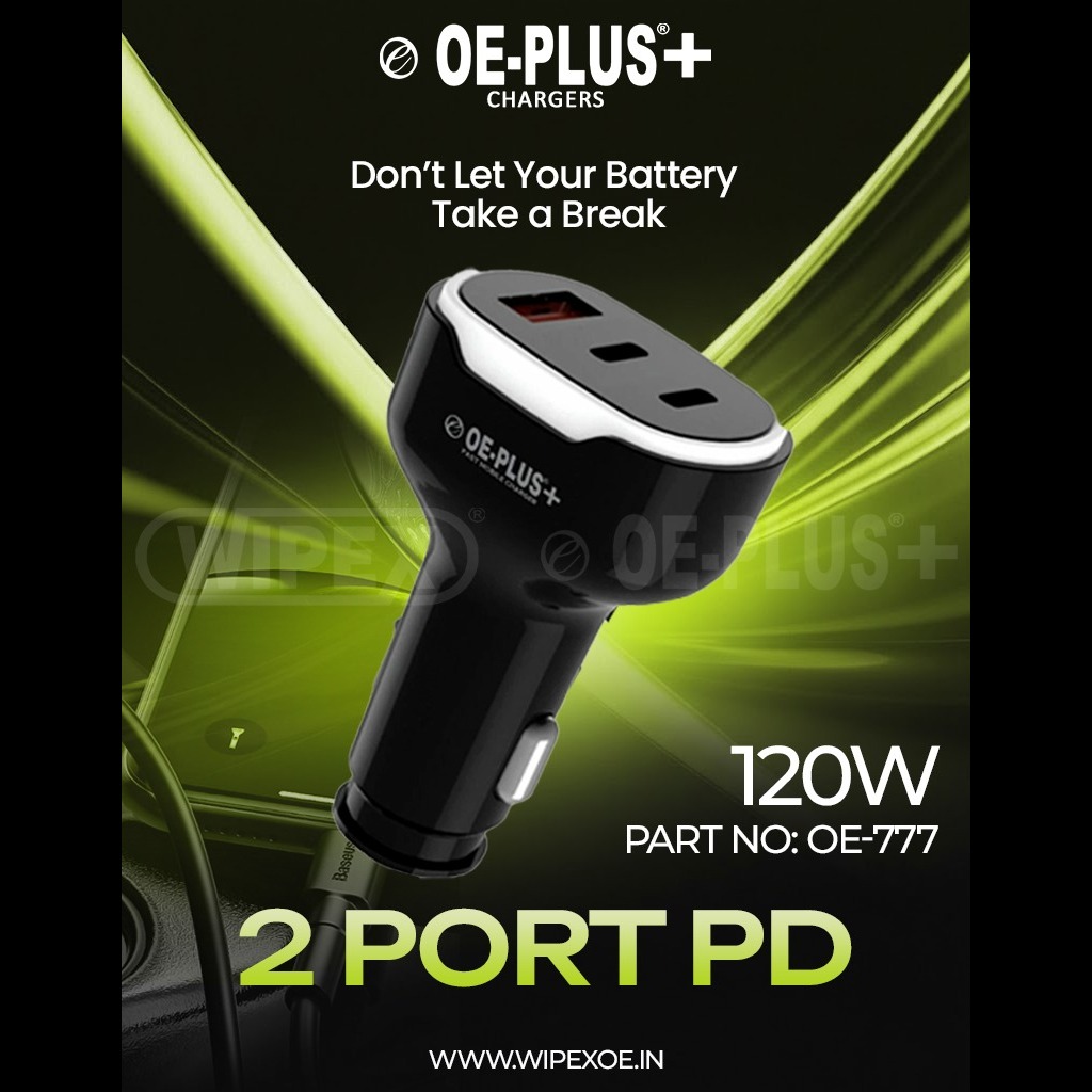 120W car charger, fast car charger 120W, dual port PD charger, car charger fast charging, USB car charger high power, OE-PLUS charger OE-777, 2 port car charger, power delivery car charger, quick charge car adapter, mobile charger for car fast