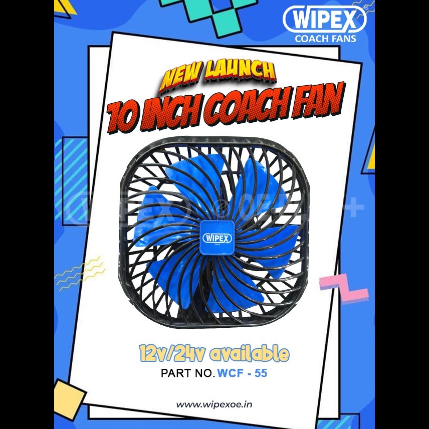 10 inch coach fan, bus cabin fan, truck cooling fan 12V 24V, vehicle cabin fan, commercial vehicle fan, automotive cooling fan India, bus fan 12 volt, truck dashboard fan, heavy duty vehicle fan, coach fan WIPEX, WCF-55 fan, bus interior fan