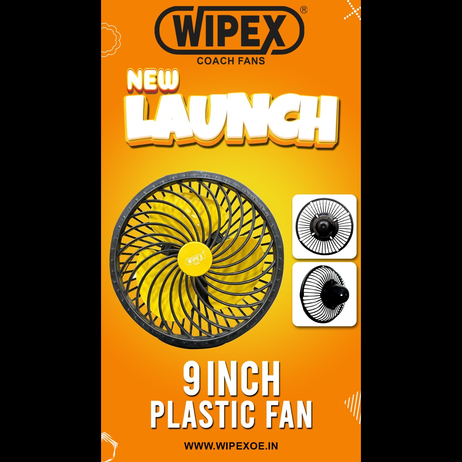 9 inch coach fan, plastic coach fan India, vehicle cooling fan, bus fan India, truck cabin fan, car cooling fan, WIPEX coach fan, portable vehicle fan, auto cabin fan, compact cooling fan, heavy duty coach fan, automotive cooling accessories