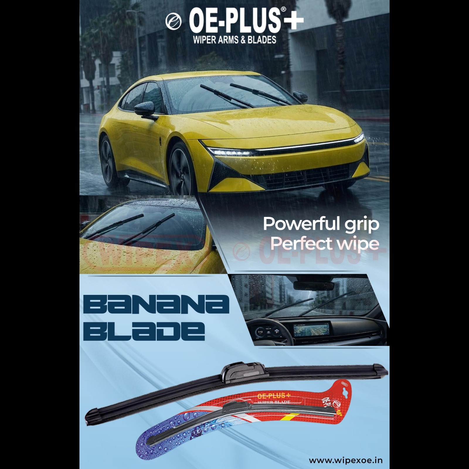 car wiper blades banana type, best windshield wipers India, frameless wiper blades for cars, OE-PLUS wiper blades, premium car wiper blades, rain wiper blades for cars, noise free wiper blades, long lasting windshield wipers, high performance car wipers, universal wiper blades India, smooth wiping wiper blades, durable car wiper blades, all weather wiper blades, aerodynamic wiper blades, best wiper blades for heavy rain