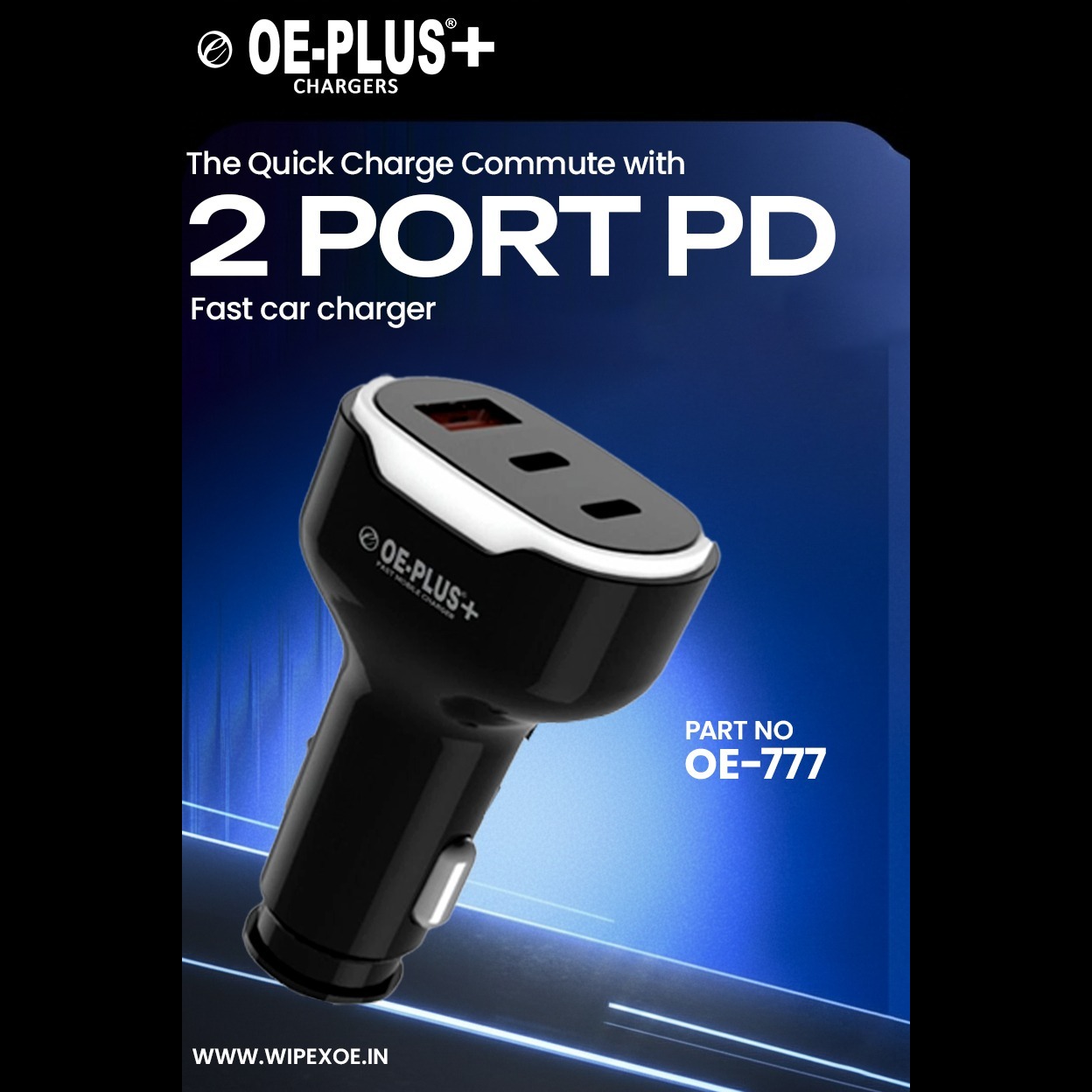 2 port car charger, PD fast car charger, dual USB car charger, OE PLUS charger, fast charging car adapter, Type C car charger, mobile car charger, quick charge car charger, dual port PD charger, automotive charger, car phone charger India