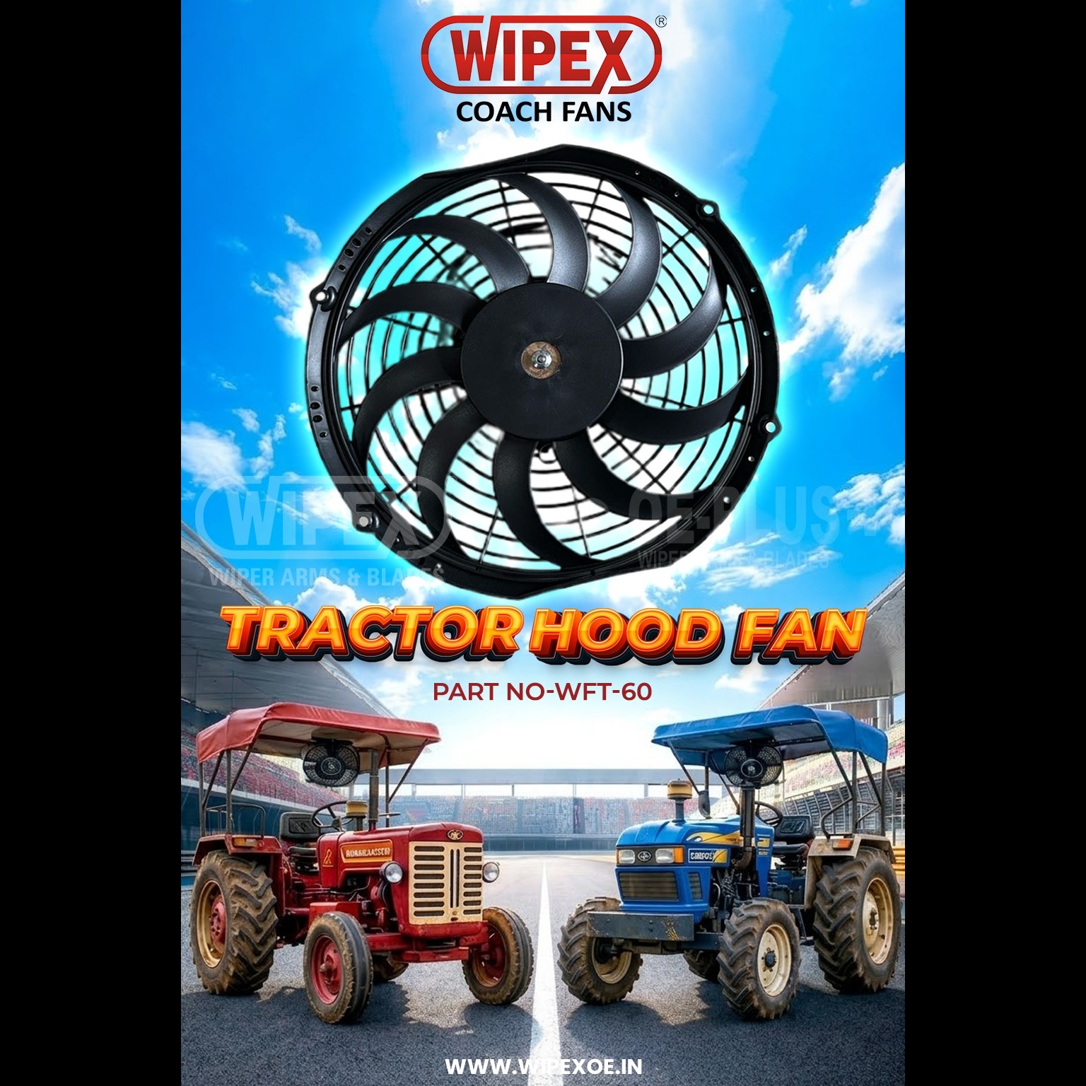 tractor hood fan, tractor cooling fan, agriculture fan for tractor, tractor cabin fan India, 12V tractor fan, heavy duty tractor fan, farm equipment cooling fan, tractor accessories India, high speed tractor fan, tractor air cooling fan, vehicle hood fan, durable tractor fan, WIPEX tractor fan, tractor fan for summer, agriculture equipment accessories