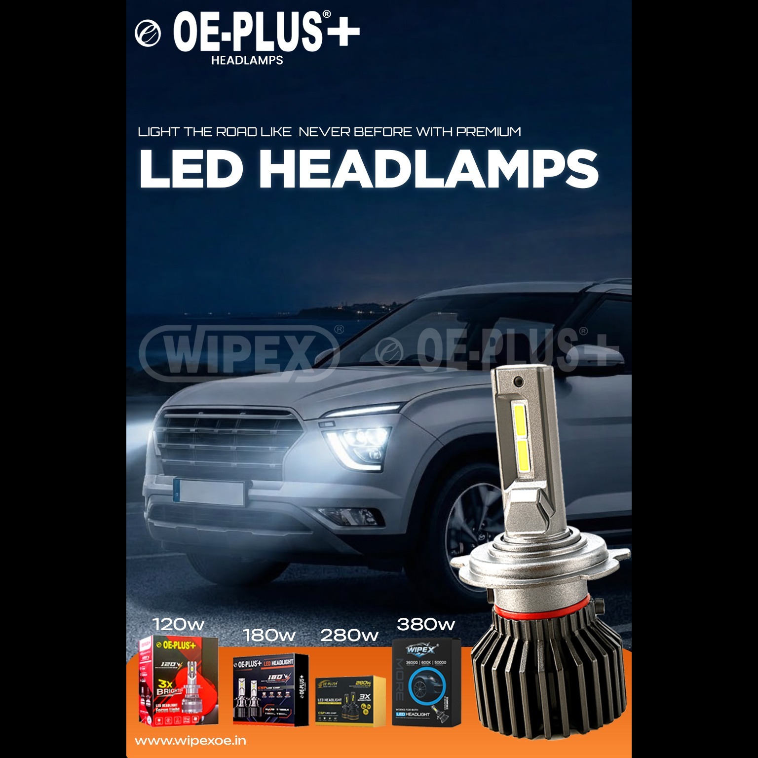 LED headlight bulbs for cars, car LED headlamps India, high power LED headlights 120W 180W 280W 380W, best LED headlights for night driving, bright car headlight upgrade, automotive LED lighting solutions, waterproof LED headlight bulbs, long life LED car headlights, plug and play LED headlamp kit, high brightness LED bulbs for cars, energy efficient car headlights, premium LED headlight kit India, OE-PLUS LED headlamps, powerful car lighting upgrade, best headlights for highway driving