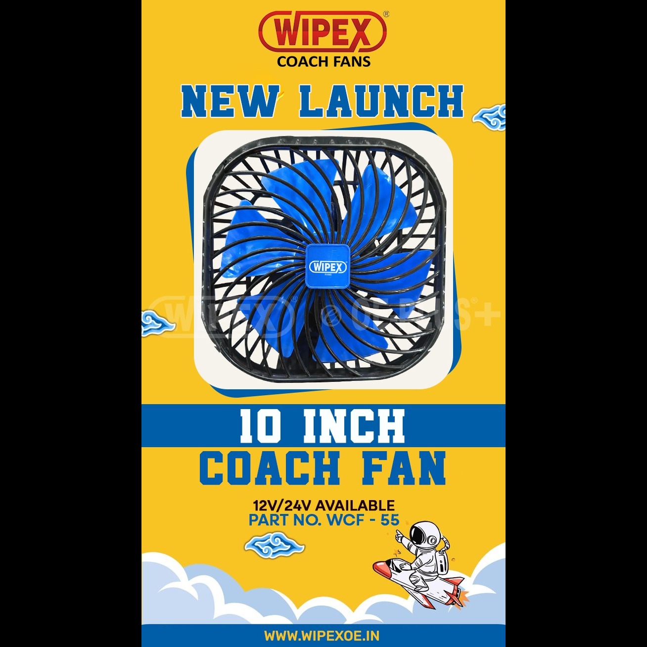 10 inch coach fan, bus cooling fan 10 inch, truck cabin fan, 12v coach fan, 24v coach fan, commercial vehicle cooling fan, WIPEX coach fan WCF-55, heavy duty bus fan, vehicle ventilation fan, bus passenger cooling fan, truck air circulation fan, automotive coach fan, dashboard fan for bus, high speed coach fan, bus cooling accessory, commercial bus fan India